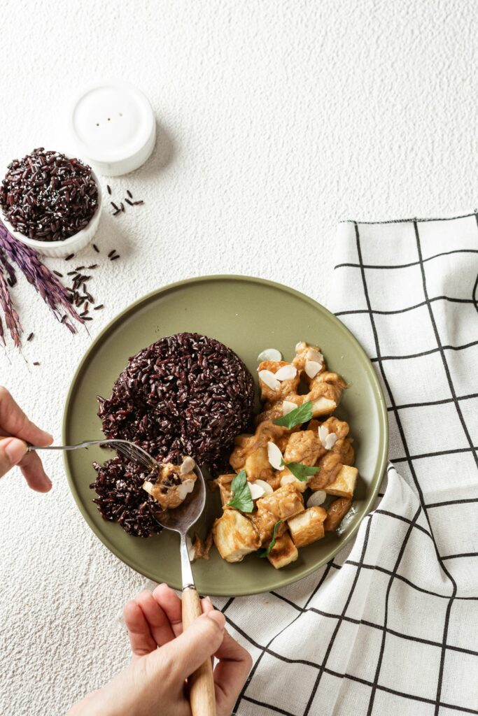 Peanut Tofu with Jasberry Organic Ready-to-Eat Superfood Rice Coconut