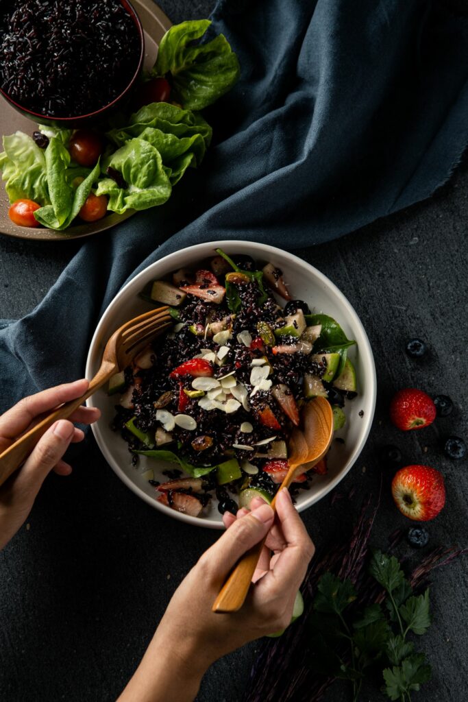 1. In a large bowl, mix Jasberry Organic Ready-to-Eat Superfood Rice Coconut, baby spinach, strawberries, blueberries, green apple, and pistachios.